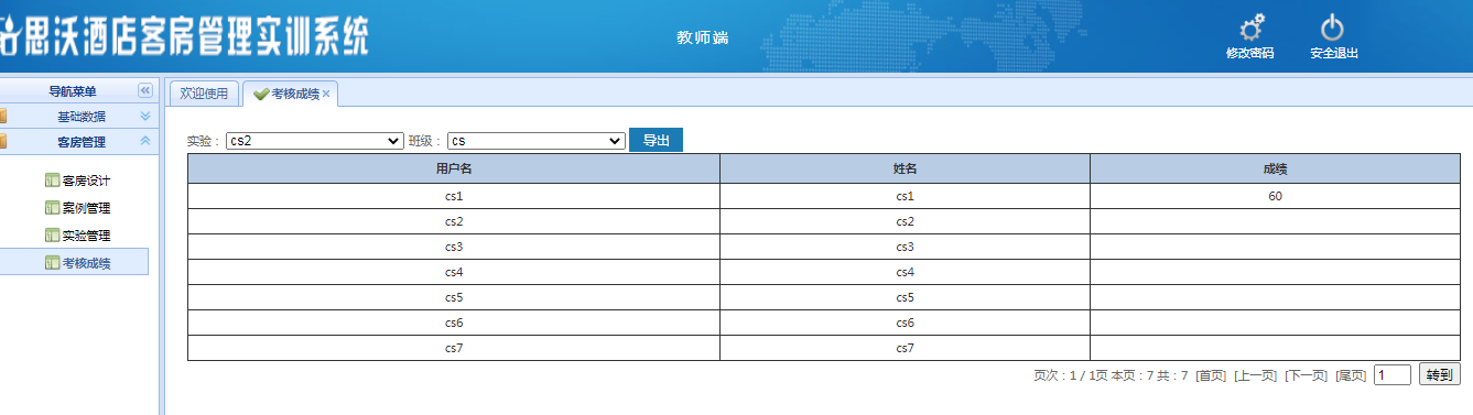 教師(shi)登陸界(jie)面:基(ji)礎數據、客房管理,在線考試(shi),資(zi)源拓(tuo)展(zhan)每(mei)個大模塊下分(fen)別(bie)有相(xiang)應(ying)的(de)子(zi)模塊。